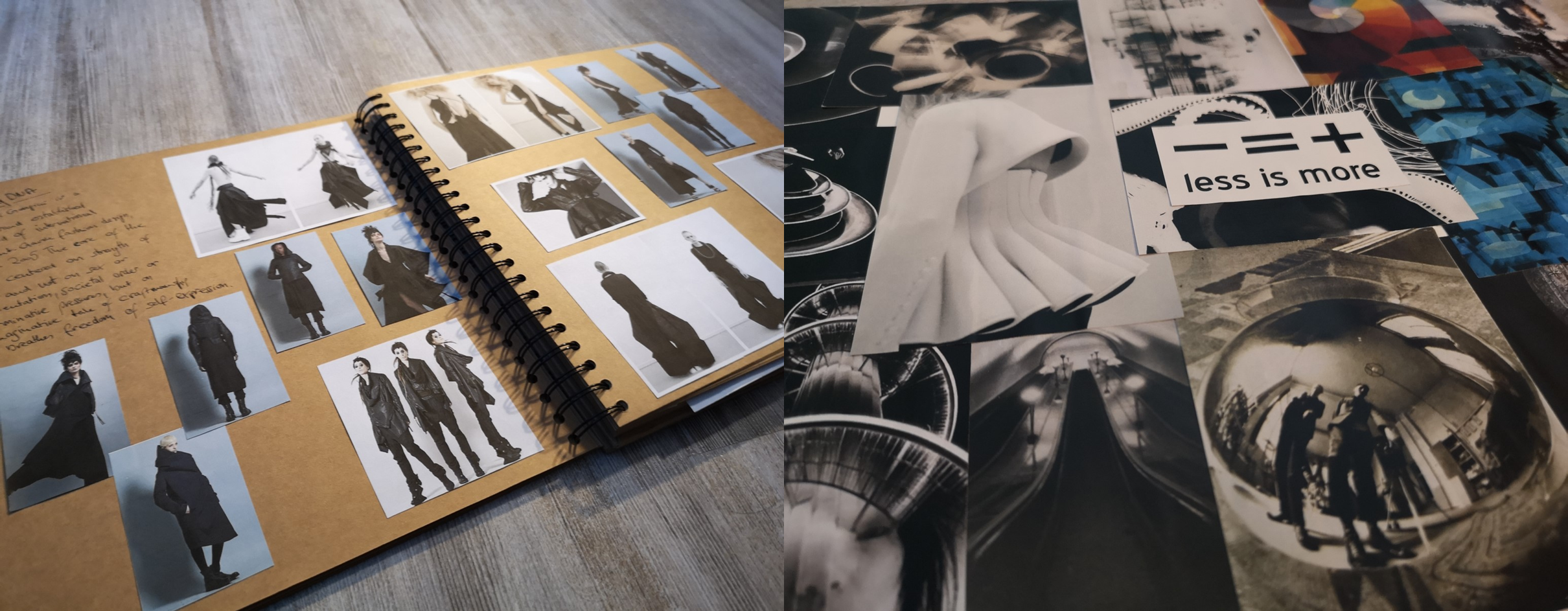 I believe that contrast through materials, cuts, and colors is just as important as creating something simple with concrete language. My inspiration comes from studying form and appearance across fashion history, which increases creative influence and enables straightforward work.